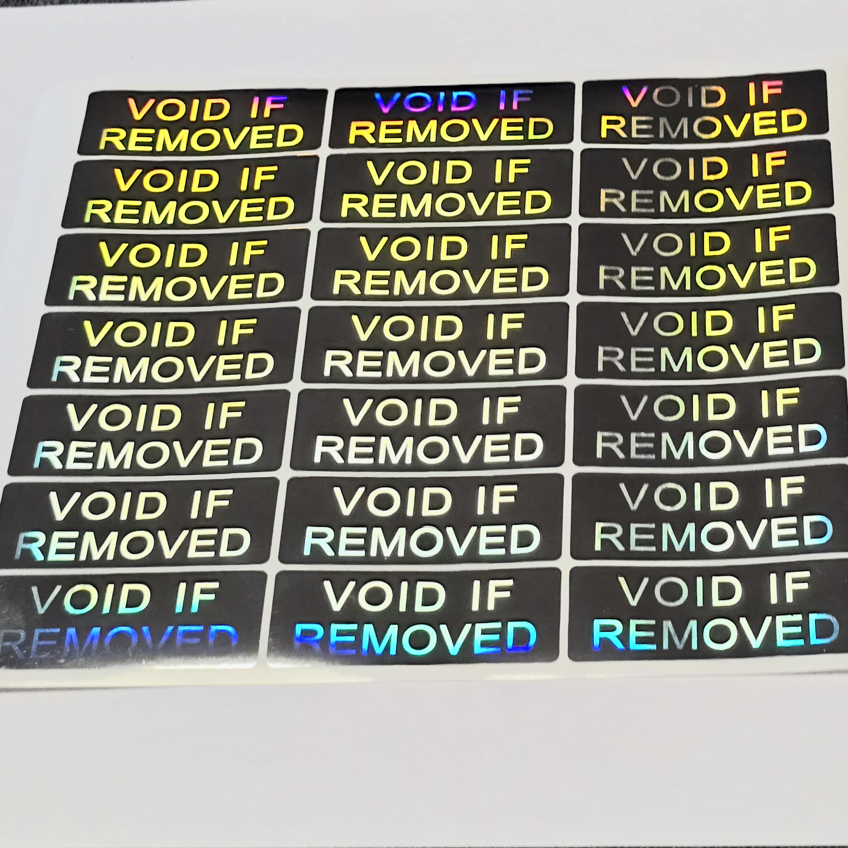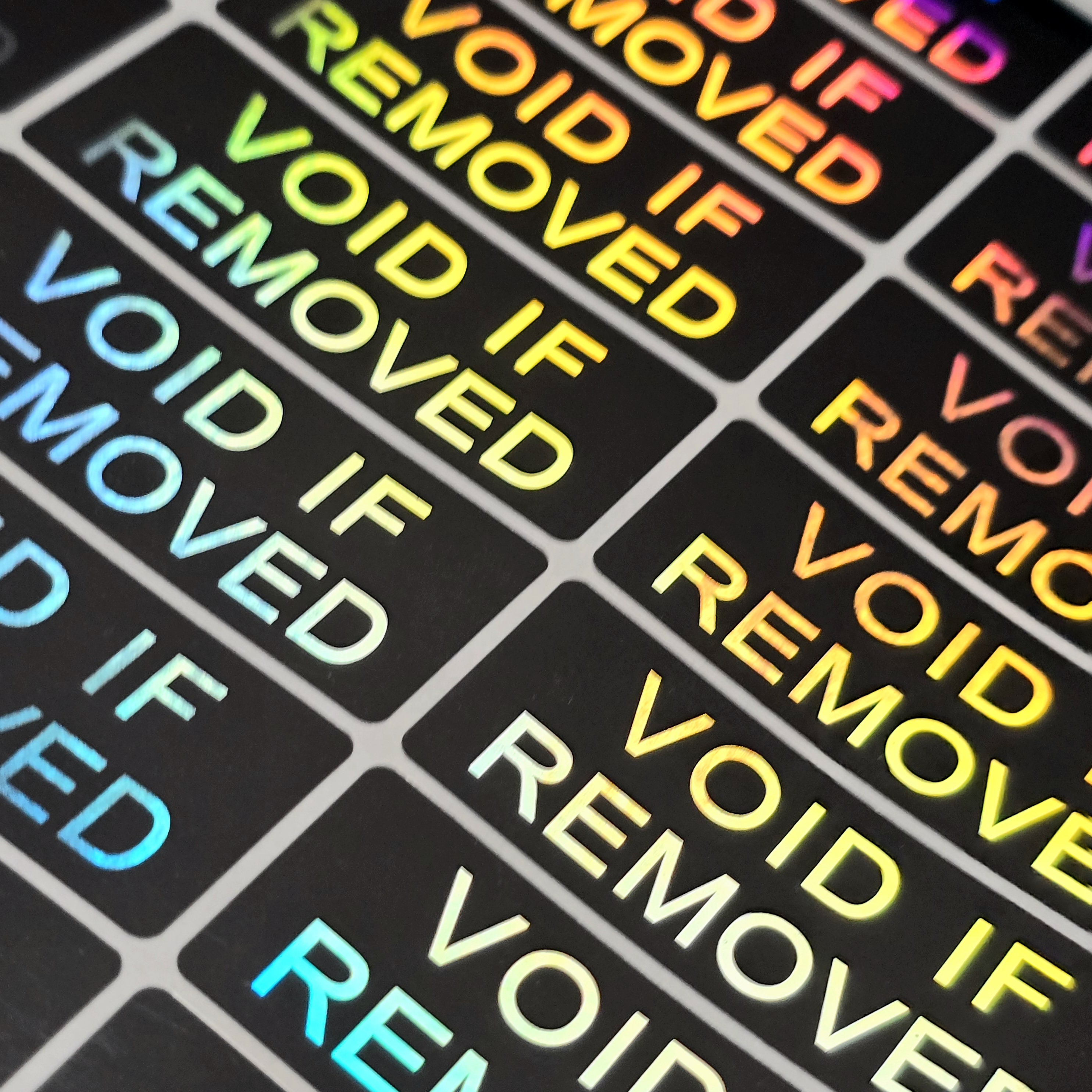 Sichern Sie Ihre Produkte effektiv ab mit diesem großformatigen 3D-Hologramm-Garantiesiegel, das durch den speziellen "Void if removed"-Effekt sofortige Sicherheit bei Manipulationsversuchen bietet.