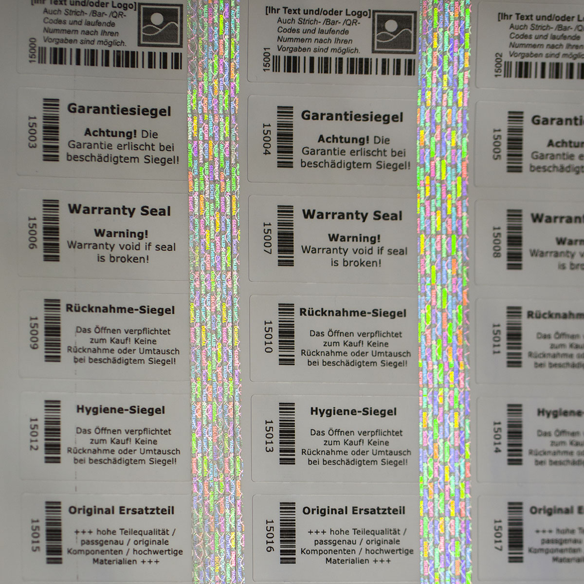 - Bitte senden Sie uns nach dem Kauf Ihre Wünsche für den Druck per E-Mail an info@hologramm-sticker.de. Logos bitte in ausreichender Qualität, vorzugsweise vektorisierte Vorlagen.