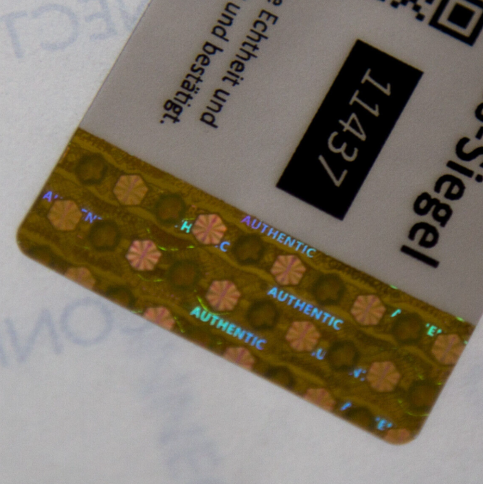 Produktinformationen "3D Hologramm Echtheits-Siegel lfd. Nummer 4 x 3 cm"