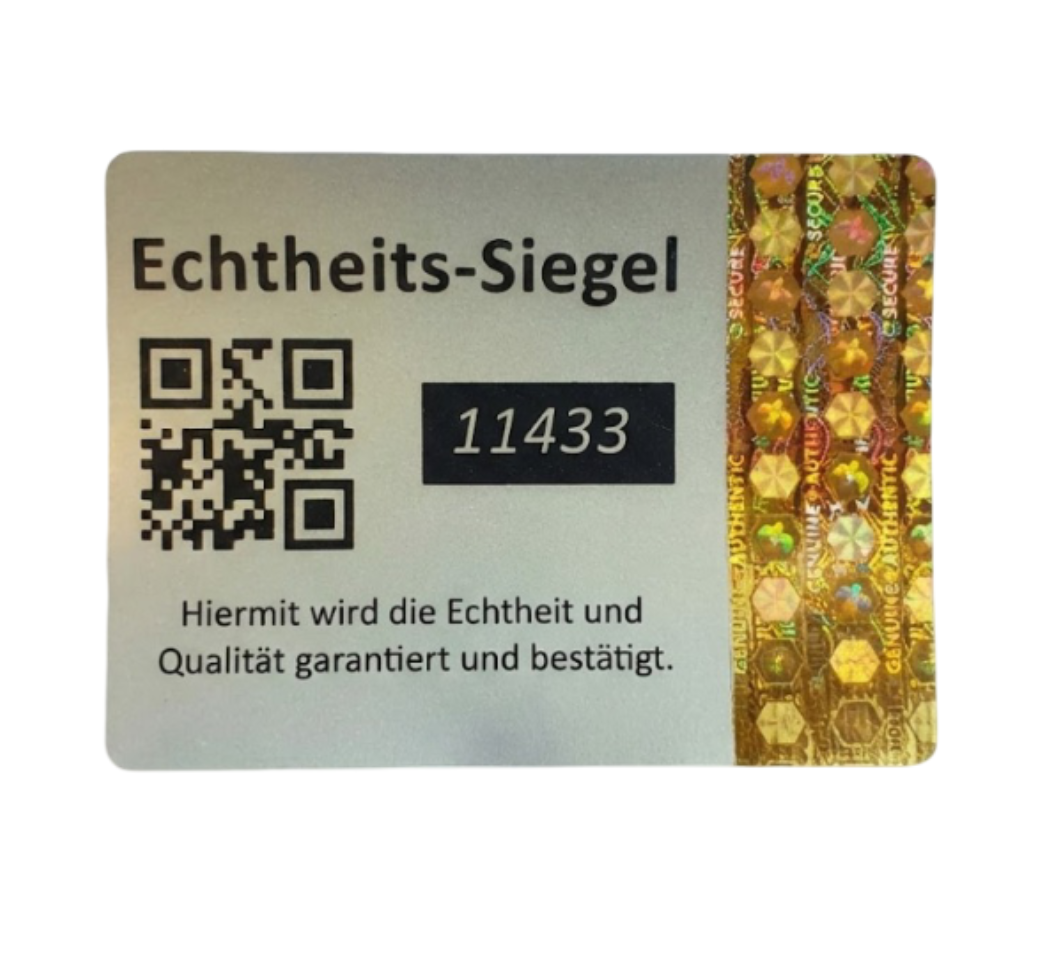 Dieses Siegel ist speziell für den Handel mit hochwertigen Gütern konzipiert, bei denen die Provenienz (Herkunft) und Authentizität zweifelsfrei belegt werden muss.