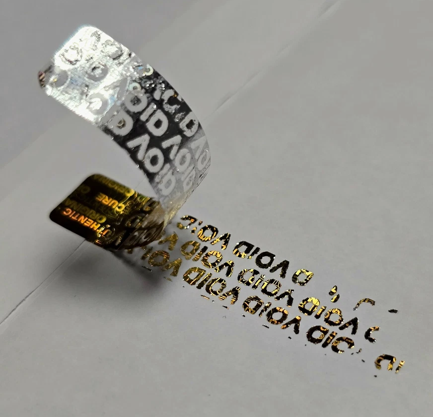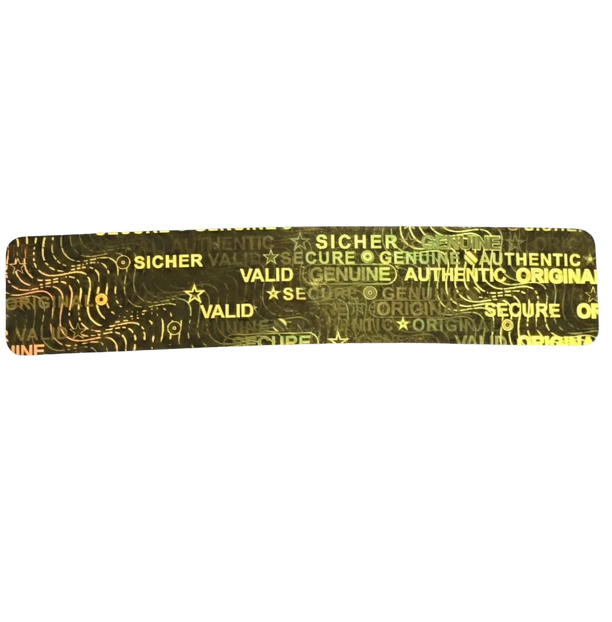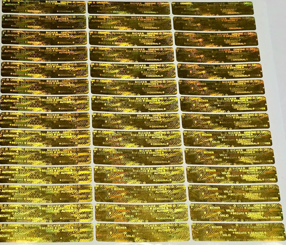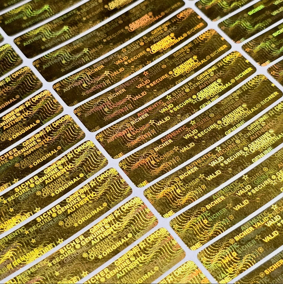 Sichern Sie Ihre Produkte stilvoll ab: Dieses Hologramm-Siegel im schlanken Format (10 x 50 mm) ist in Silber oder Gold erhältlich und bietet effektiven Schutz durch den integrierten Selbstzerstörungsmechanismus.