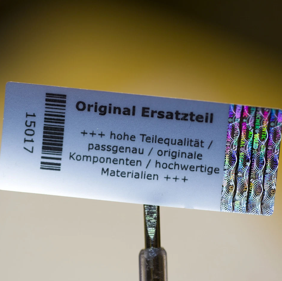 Unterstreichen Sie die Wertigkeit Ihrer Komponenten: Dieses Siegel "Original Ersatzteil" bestätigt Passgenauigkeit und Qualität auf den ersten Blick. Ausgestattet mit Hologrammstreifen, Seriennummer und scanbarem Strichcode.