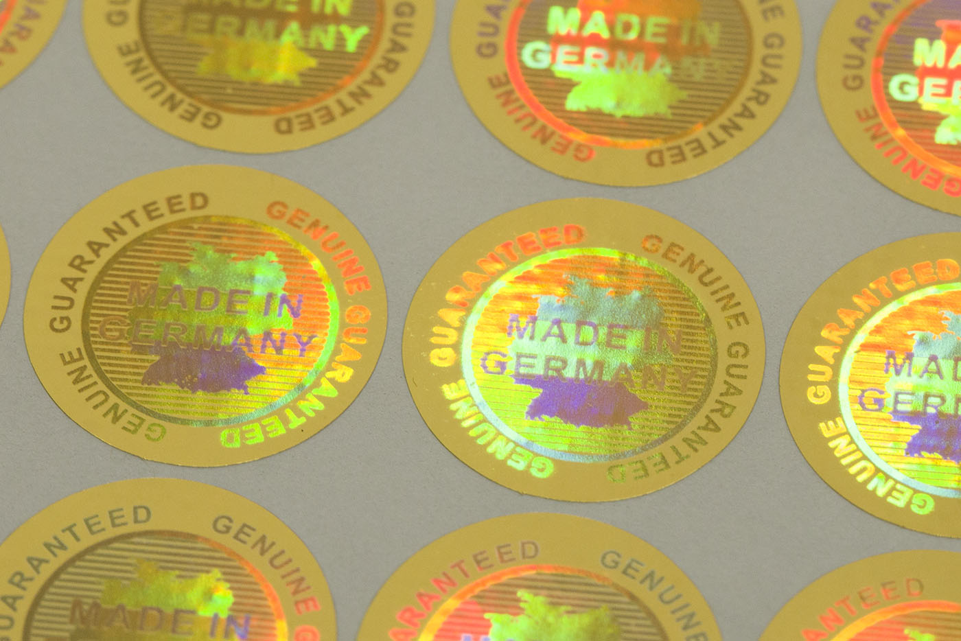 Mit diesem Aufkleber können Sie zum Beispiel die Verpackung Ihres Produktes aufwerten. "Made in Germany" - Qualitätsarbeit aus Deutschland genießt weltweit einen hervorragenden Ruf, warum nicht damit werben? Durch den schillernden Hologramm-Effekt heben Sie sich von anderen Produkten/Verpackungen ab. Sie können den Sticker aber auch als Siegel nutzen, um Verpackungen manipulationssicher zu verschließen. Der Aufkleber kann nicht ohne sichtbare Beschädigung abgelöst werden.