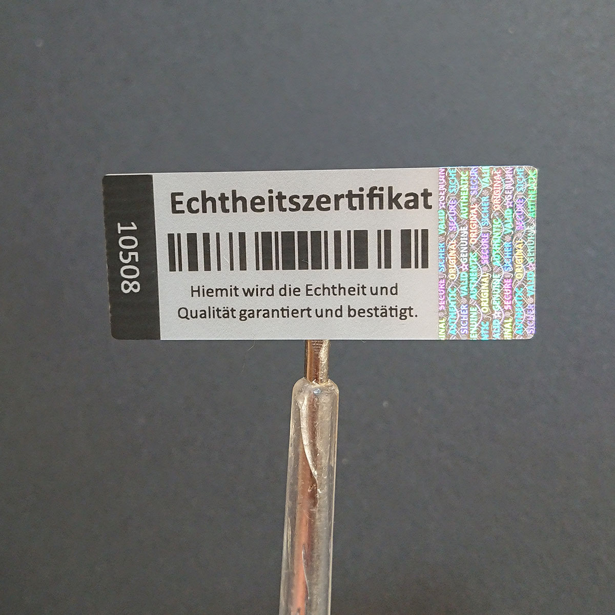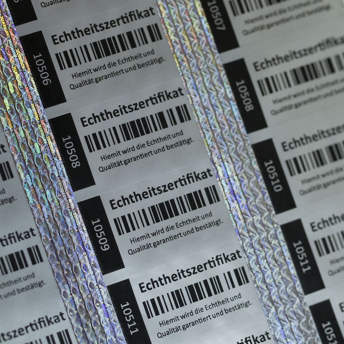 Echtheitszertifikat 5x2 cm mit Hologramm und Seriennummer