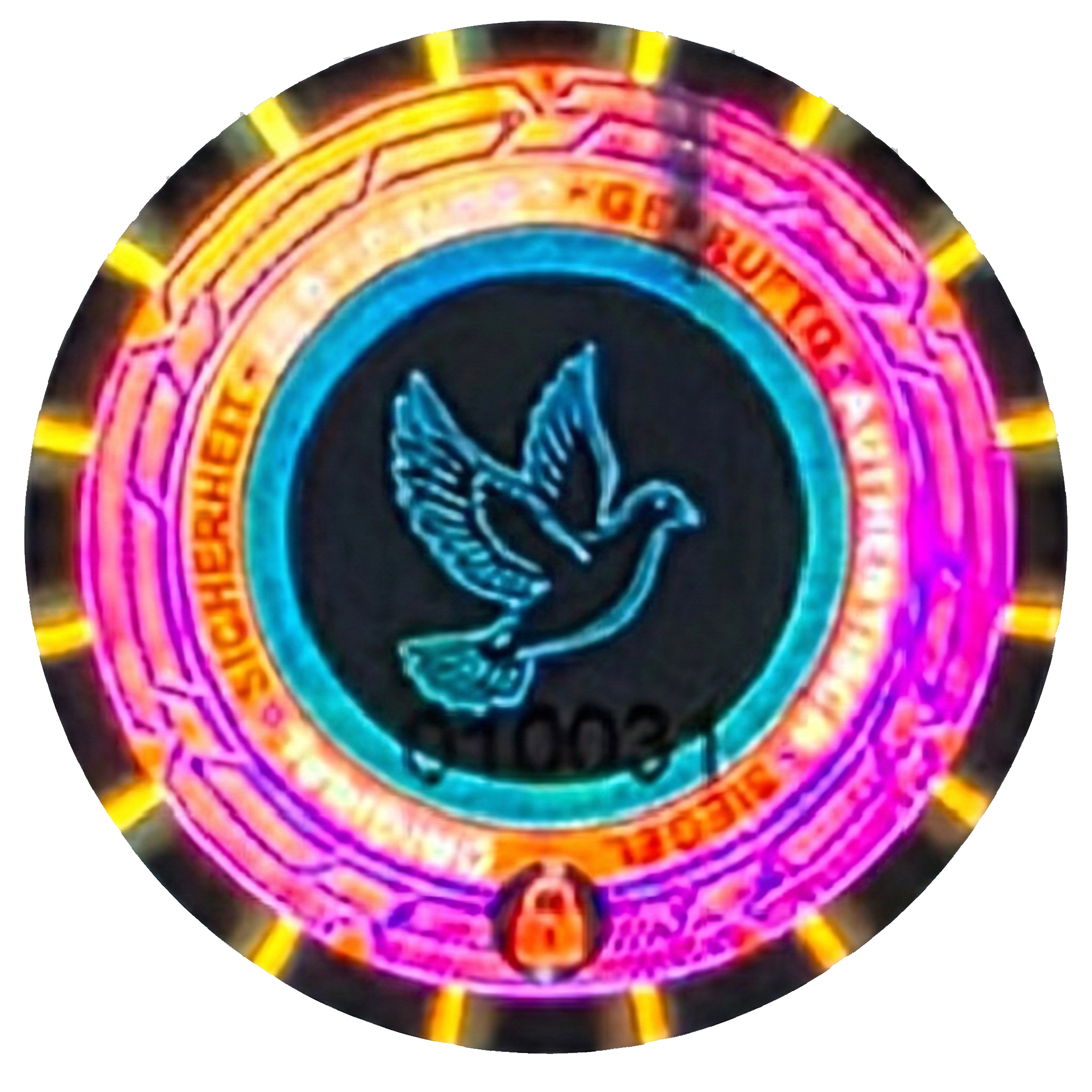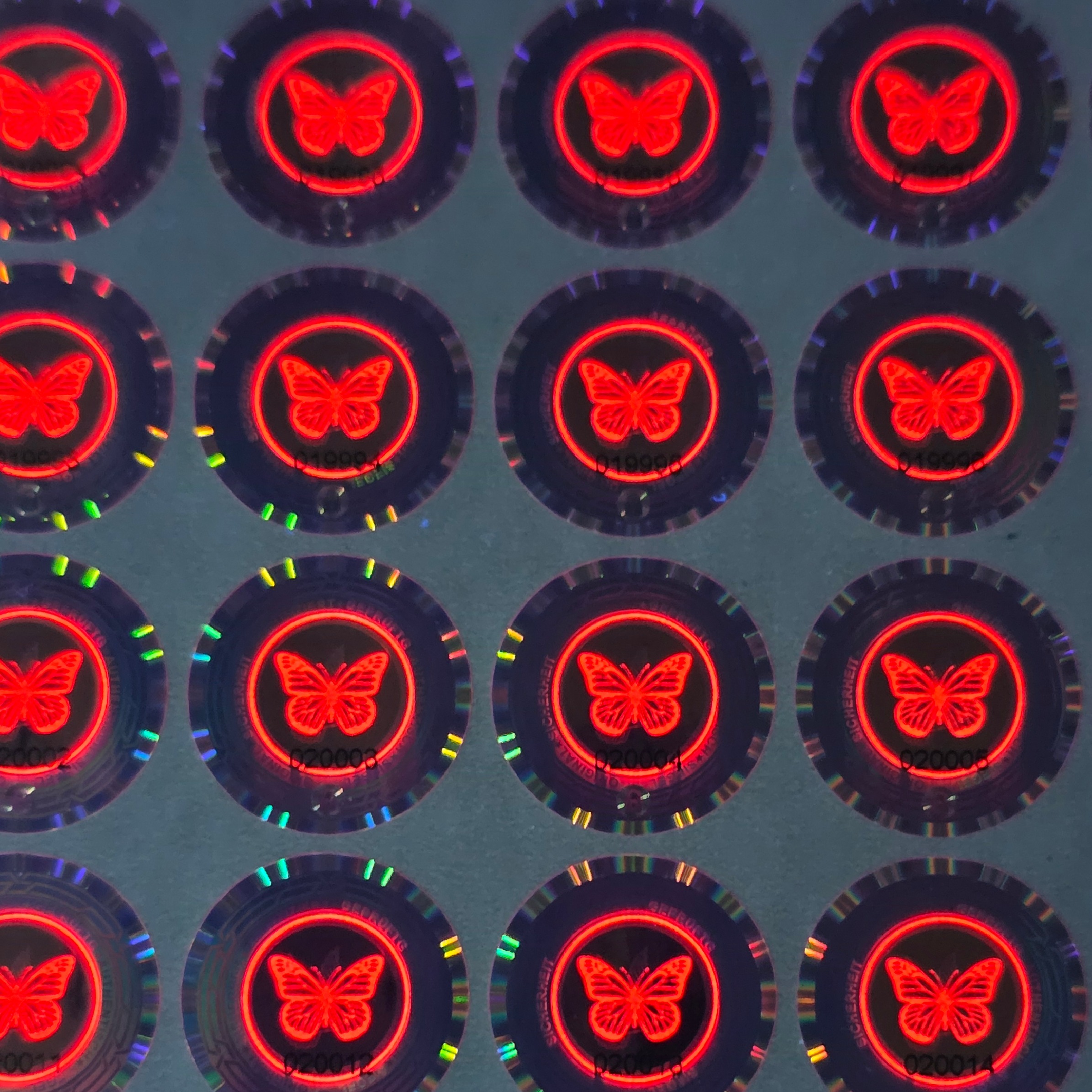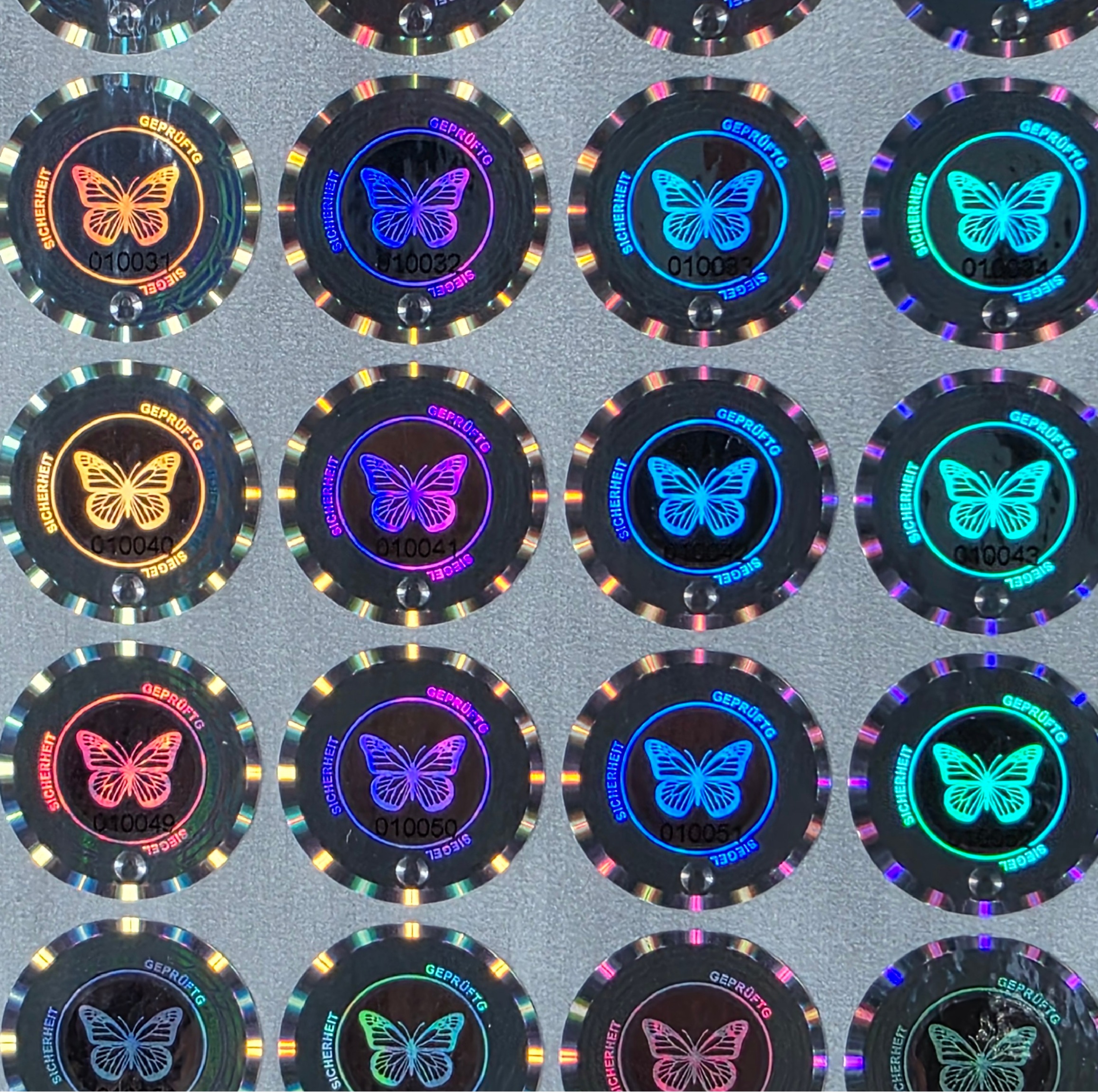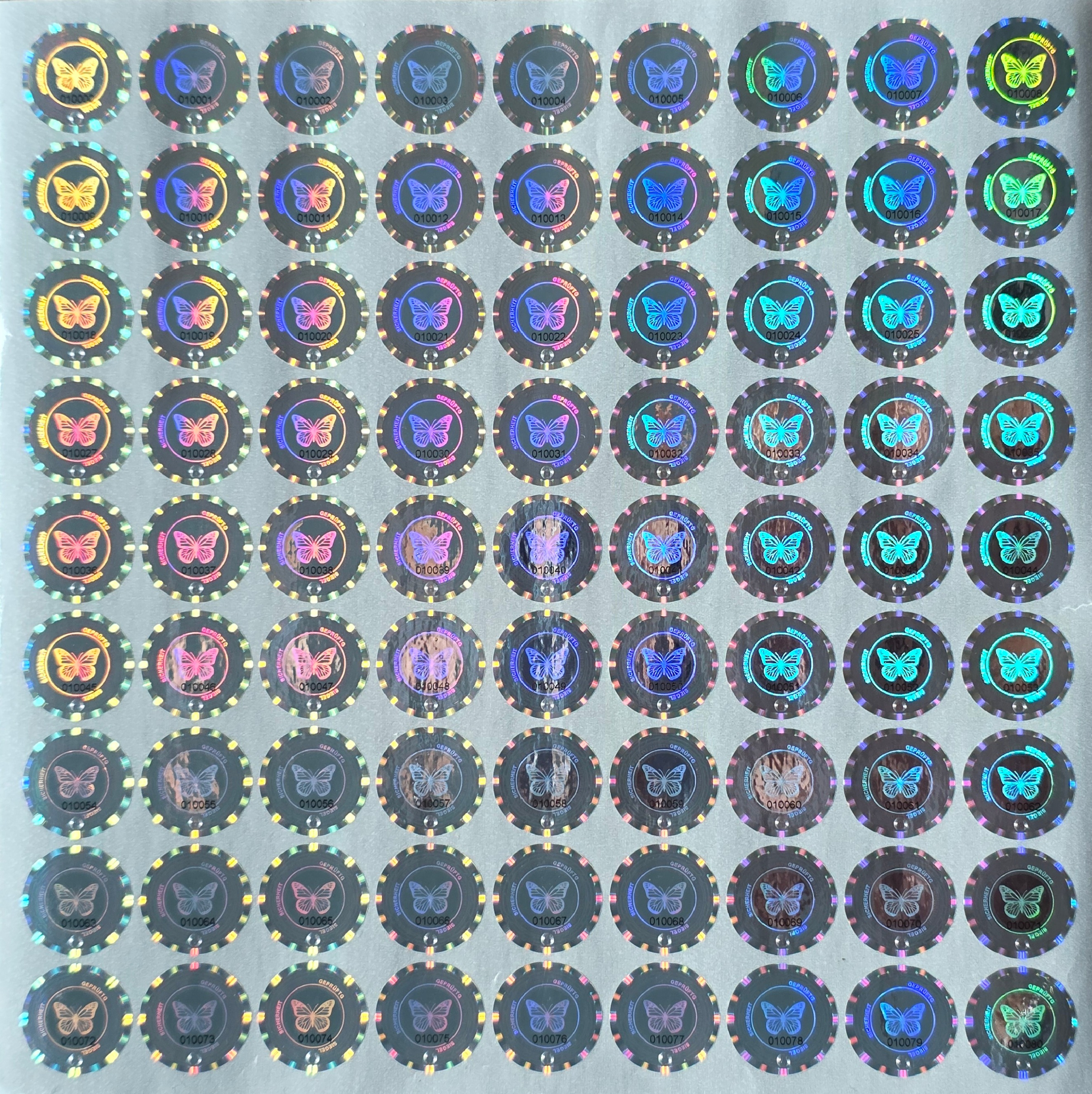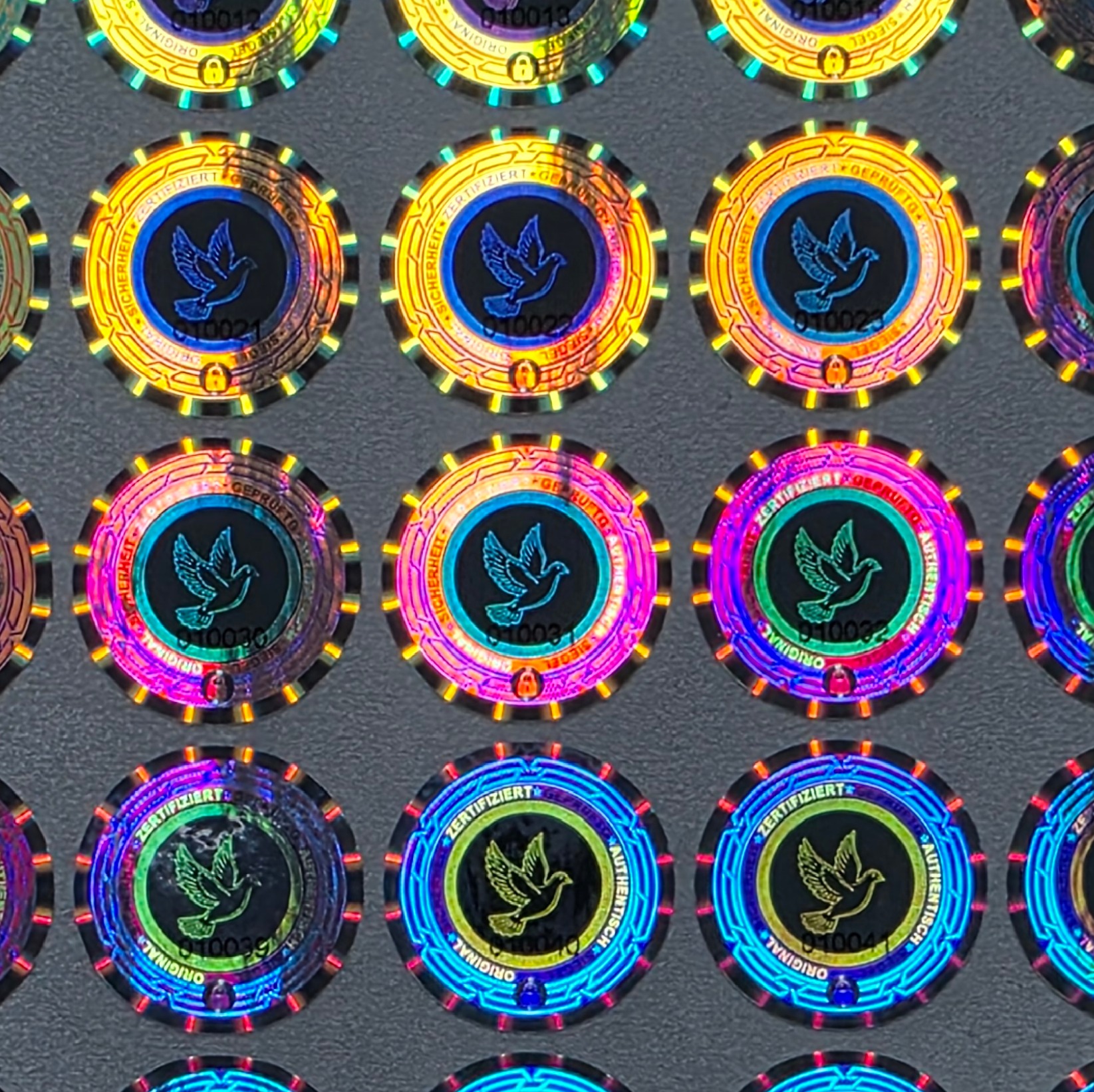Ein Hologramm mit Flip-Flop, Linse, Mikrotext, lfd. Nummer UND UV-Druck ist als Standardware selten. Da dieses Design von uns erstellt wurde, erhalten Sie diesen Schutz hier aus erster Hand.