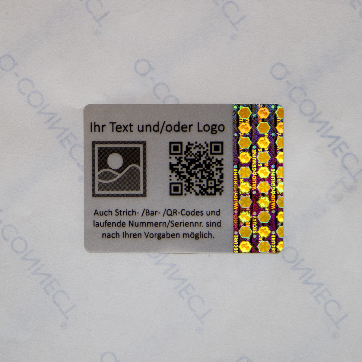 - Bitte senden Sie uns nach dem Kauf Ihre Wünsche für den Druck per E-Mail an info@hologramm-sticker.de. Logos bitte in ausreichender Qualität, vorzugsweise vektorisierte Vorlagen.